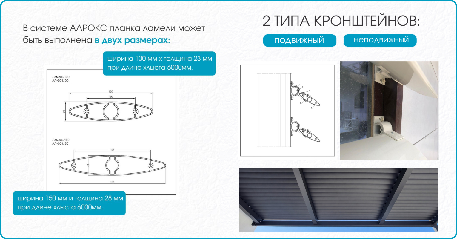 Конструктивные параметры системы. В серрии Алрокс 500 предусмотрены подвижные и неподвижные кронштейны, что расширяет возможности проектирования и адаптации под конкретные задачи.