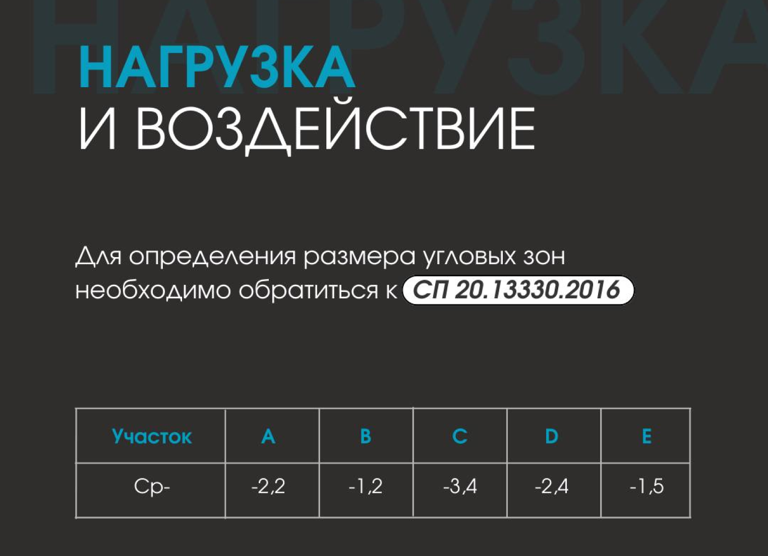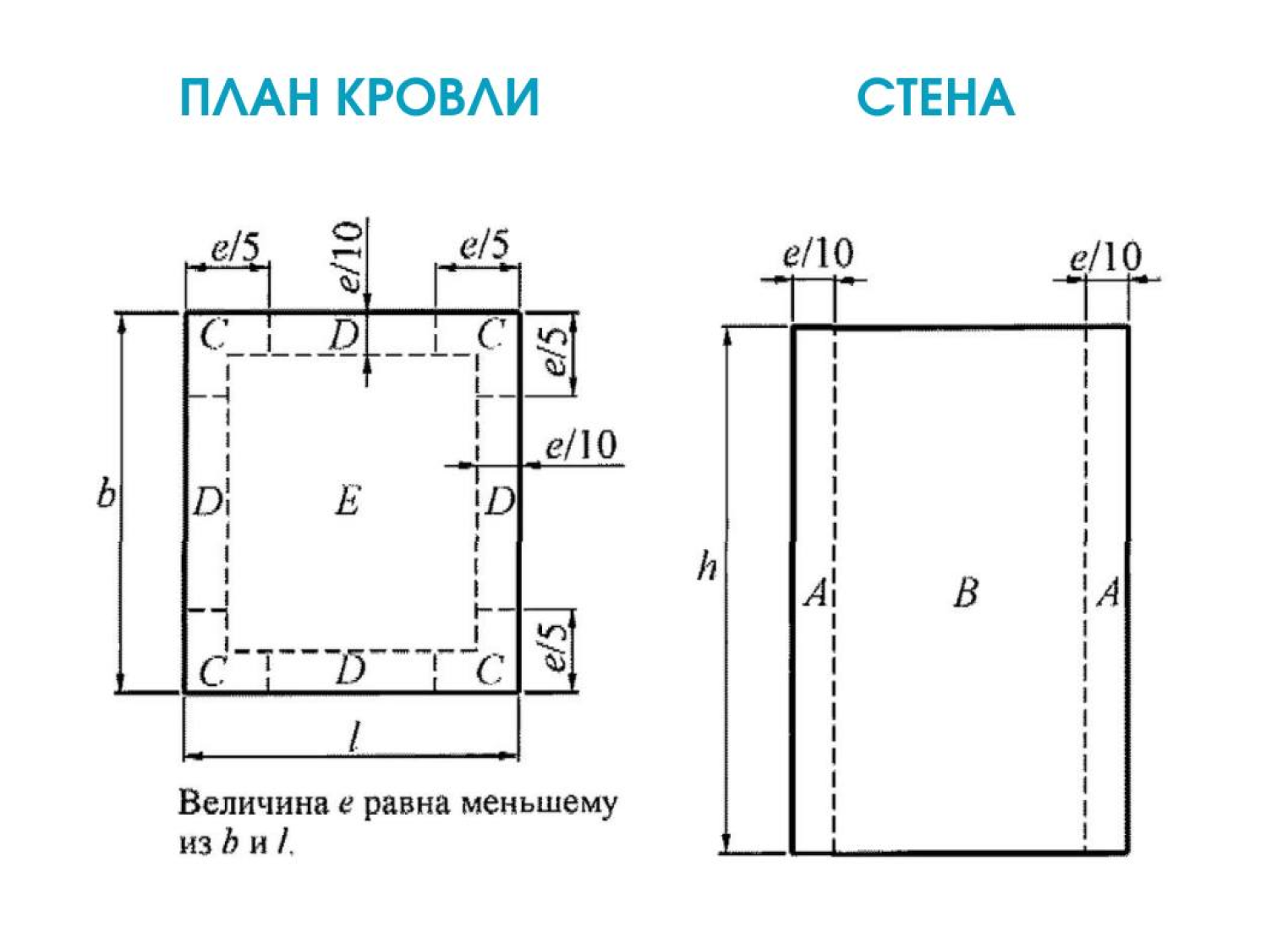 Для определения размеров угловых зон необходимо руководствоваться требованиями СП 20.13330.2016 «Нагрузки и воздействия».