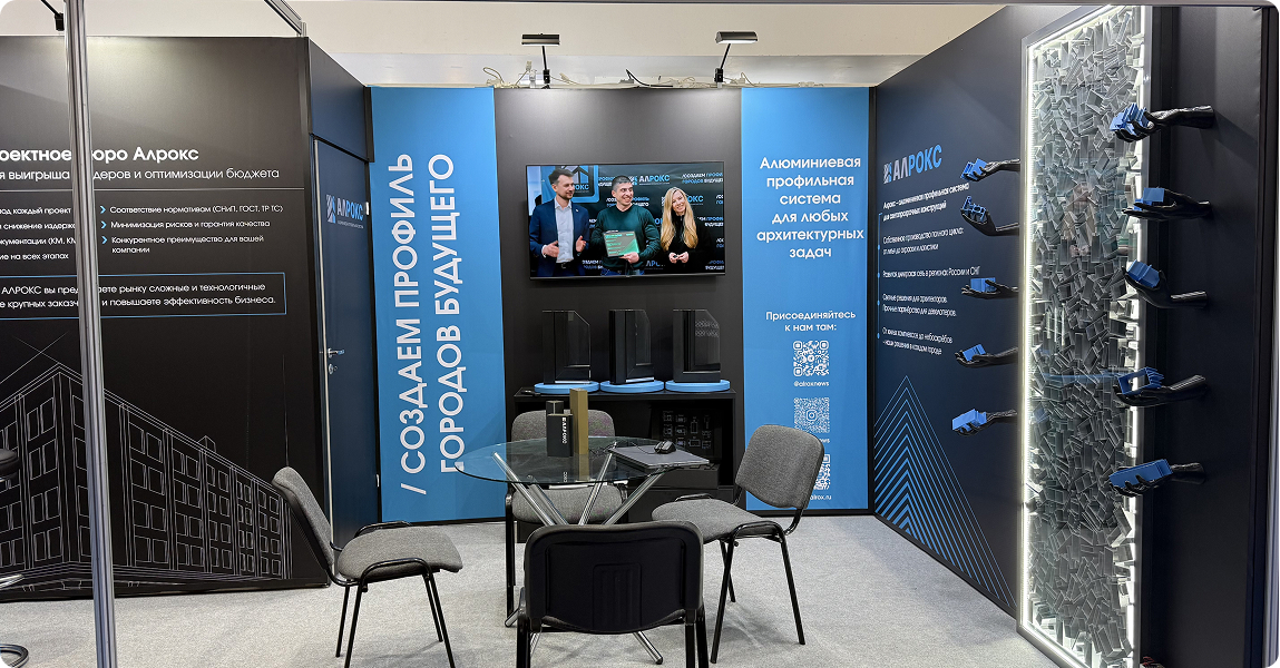 Стенд АЛРОКС — это диалог инженерии и архитектуры, ставший отражением сути компании — точность, технология и стиль, объединённых в одном пространстве. Он показывает, что за каждым алюминиевым профилем стоит команда, превращающая металл в форму, идею — в конструкцию, а конструкцию — в архитектуру. Это команда, формирующая профиль городов будущего — вместе с архитекторами, девелоперами и переработчиками.