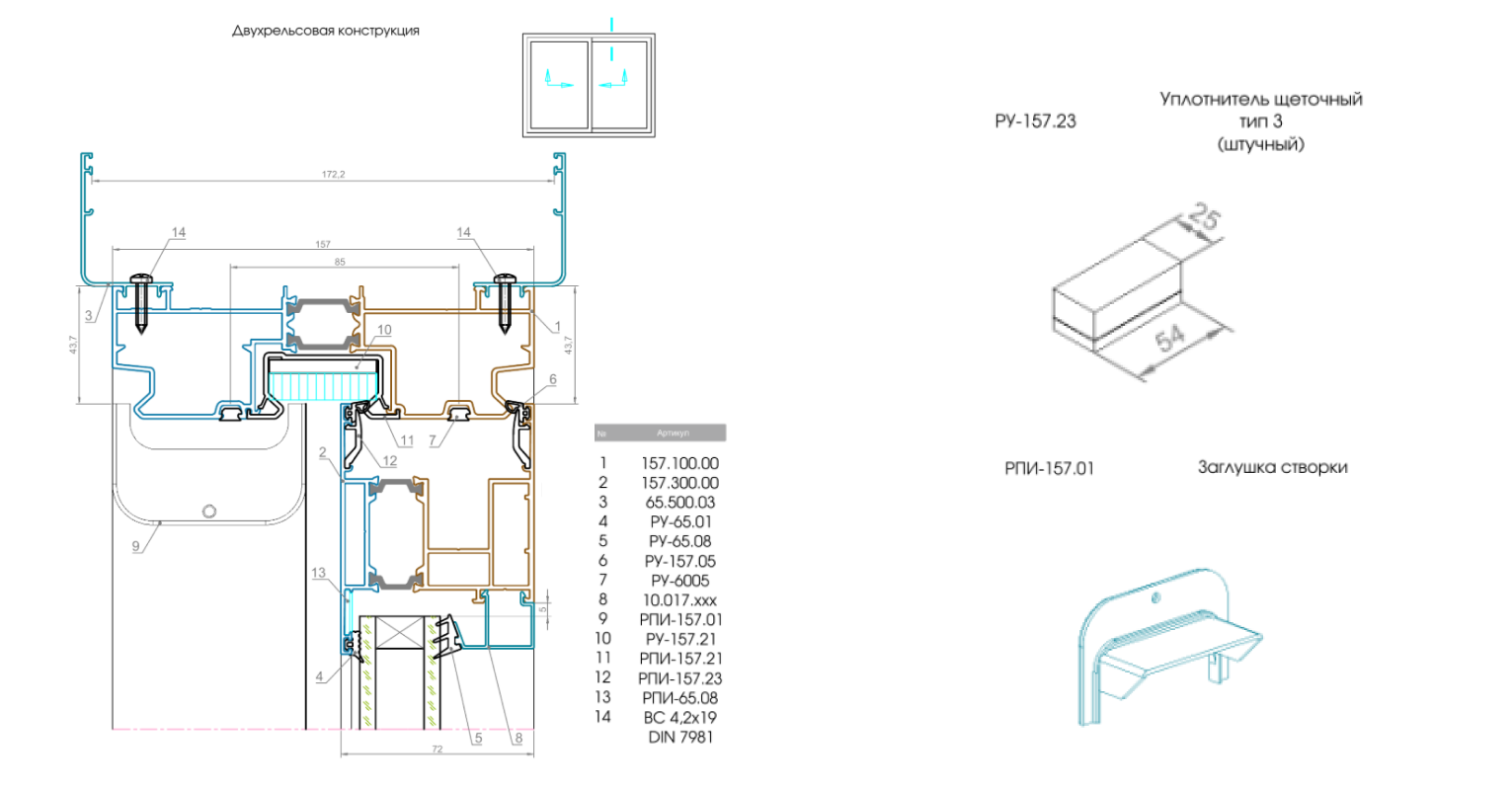 В новой модификации комплектующих пространство между створкой и рамой в собранной конструкции закрывается РПИ-157.01 и вклеенным в нее РУ-157.23 (3х слойный уплотнитель) . Модификация уплотнителя такова, что она не деформируется на жаре или морозе, восстанавливает форму сразу после сжатия не оставляя заломов и, соответственно, заполняя полностью свободное пространство и не позволяя ветру проходить под и над створкой.